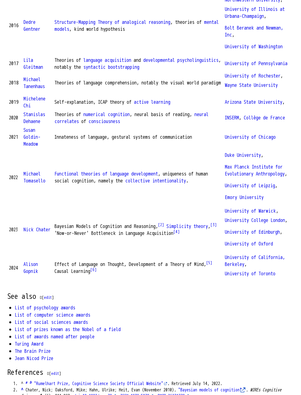 David E. Rumelhart Prize for Contributions to the Theoretical Foundations of Human Cognition